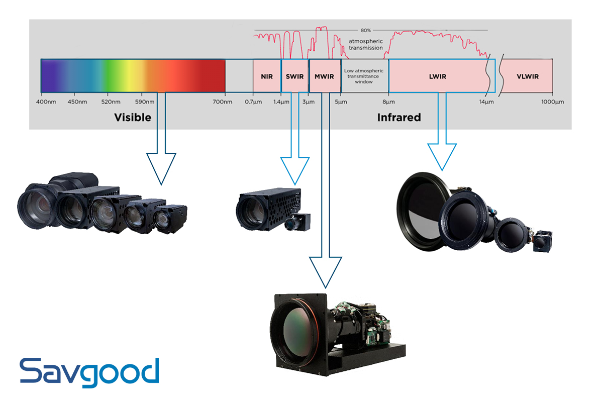 Il modulo telecamere SWIR SavGood potrebbe coprire 1000 ~ 1700 nm corta - banda spettrale ondata, con obiettivo fisso e lente SWIR zoom, fino a 510 mm di lunghezza focale, supporta la rete + output a doppia SDI.